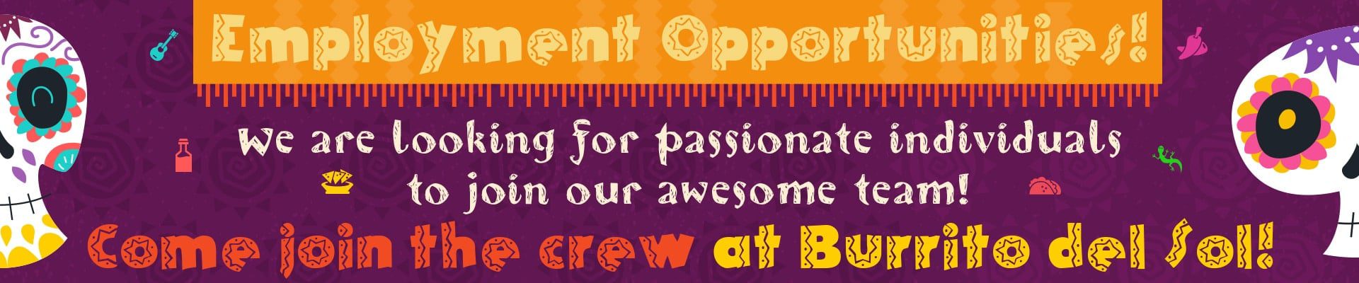 We’re looking for passionate individuals to join our awesome team! Come join the crew and help make Burrito del Sol one of the best restaurants in Northwest Florida.